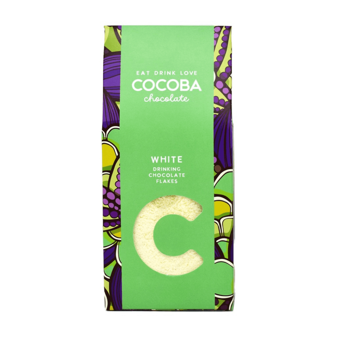 To create a delicious iced chocolate drink: pour 4 or 5 tablespoons of the white drinking chocolate flakes into a tall glass, and then stir in 2 tablespoons of boiling water to make a paste. Add roughly 200 - 250ml of your preferred animal or plant milk over the top and stir well. Finish with some ice, sip, and enjoy.