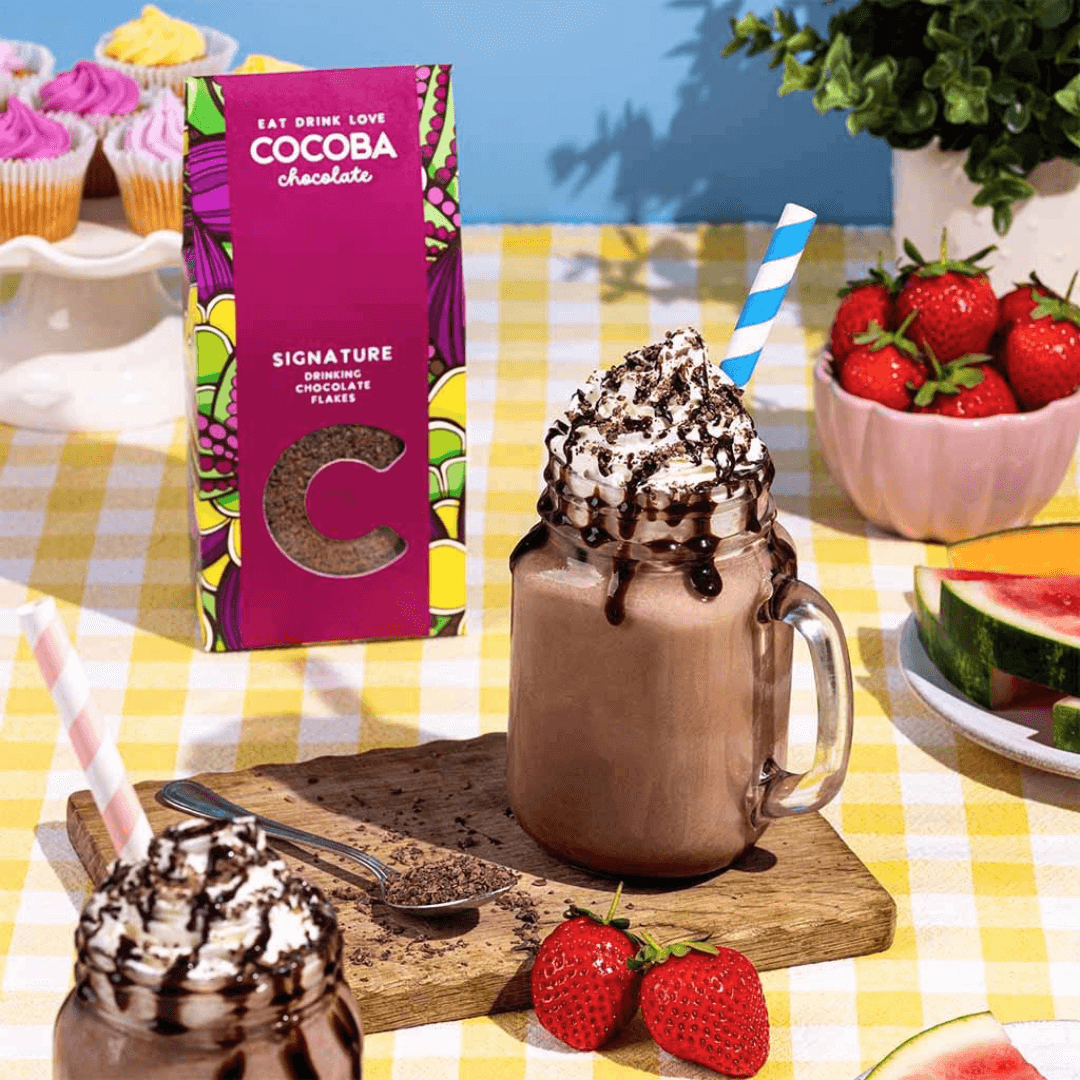 These award-winning 55% dark chocolate shavings create a rich and velvet-smooth hot chocolate to indulge, or they can be used to create a refreshingly cool iced chocolate drink. What's more, these versatile flakes are also great for adding into your recipes when cooking, and they make a fantastic topping for sprinkling on your morning cappuccino to give you a cocoa boost!