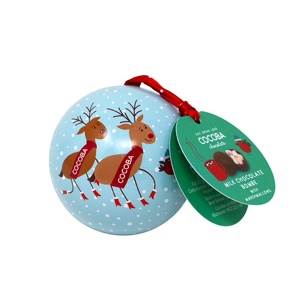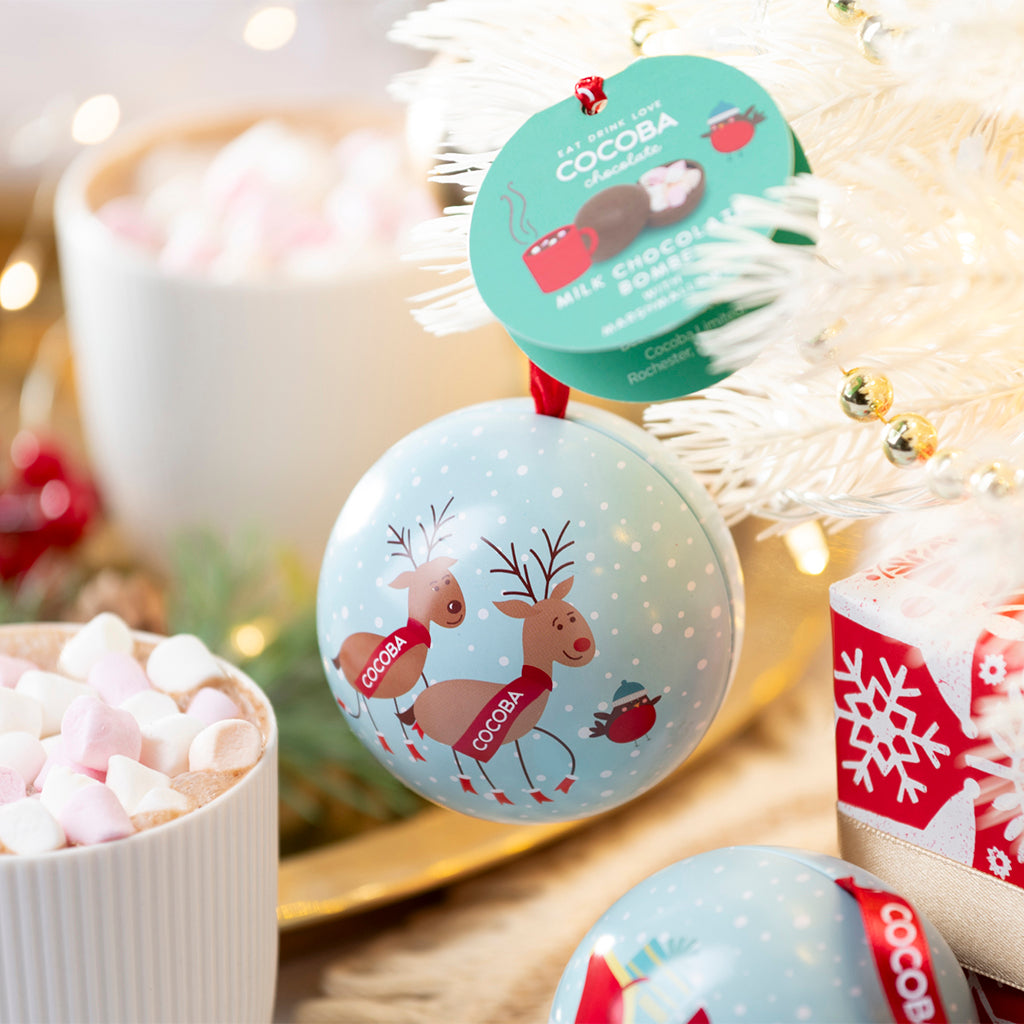 Decorate your tree with the cutest of Christmas baubles, depicting a snowy scene with Santa and his slay or Rudolph and friends. Best of all, these baubles have a treat inside! Open them up and discover a magical Hot Chocolate Bombe that's filled to the brim with fluffy marshmallows.