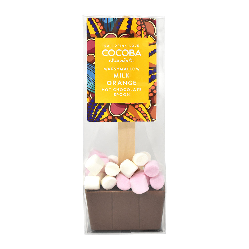 Enjoy our orange-flavoured hot chocolate at home or on the go with our new Orange Hot Chocolate Spoon. Made from the highest quality premium milk chocolate, complete with a helping of fluffy marshmallows sprinkled on top.
