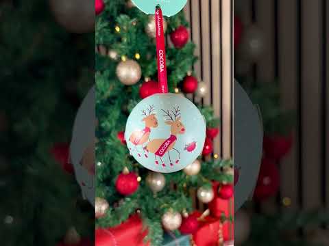 Bring sparkle to your Christmas tree with Cocoba’s Salted Toffee Truffles Christmas Bauble. Each festive bauble features a snowy Santa and Rudolph scene, making it a charming addition to any Christmas tree.