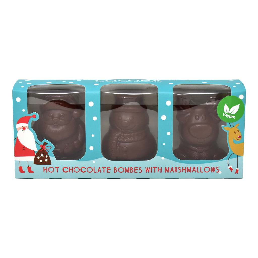 Meet our loveable Christmas Character Hot Chocolate Bombes, made from delicious vegan milk chocolate into the shape of a Santa, Reindeer, and Snowman. Our fun, vegan-friendly characters are perfect as a festive treat for little ones with vegan, vegetarian or dairy free diets this Christmas, and great for gifting with our "I'm a mug for hot chocolate" mug to create the ultimate hot chocolate experience.